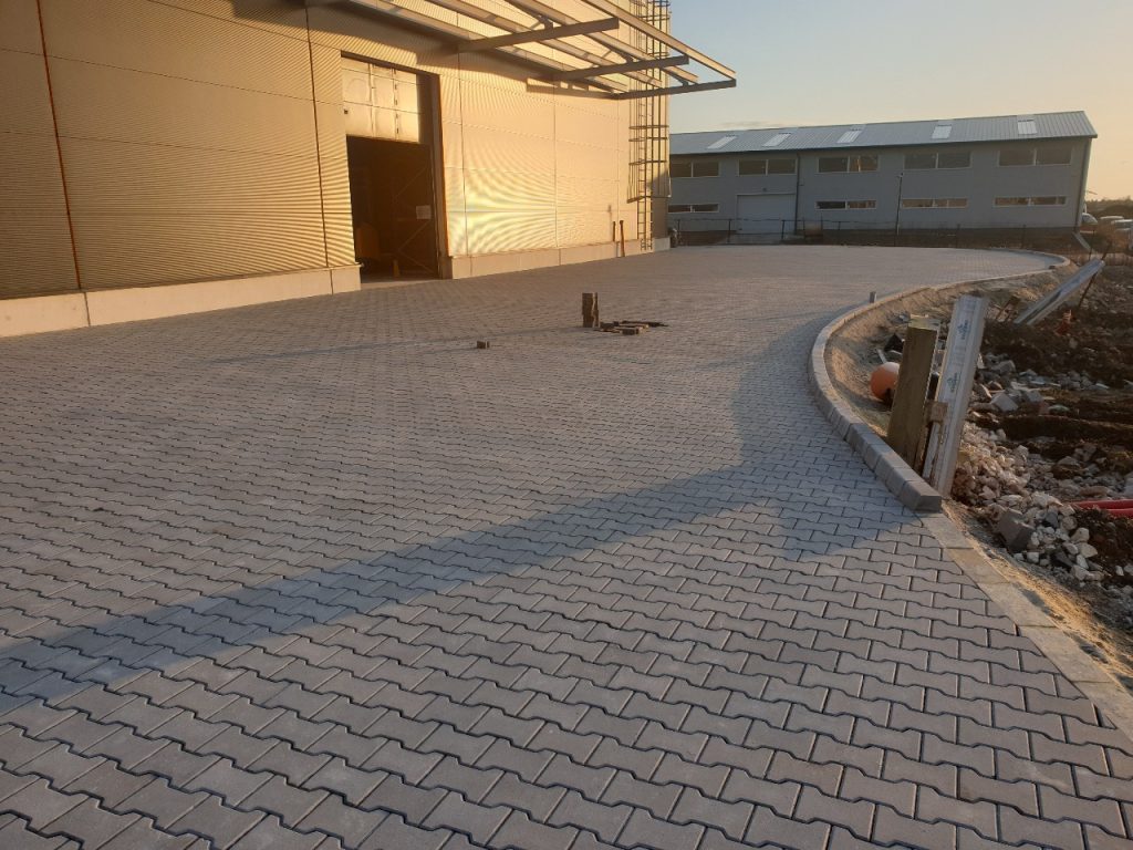 Költséghatékony, esztétikus megoldás. Nehezebb jármű, tehergépjármű forgalomra készült több száz-ezer m2-es terület térkövezése.
